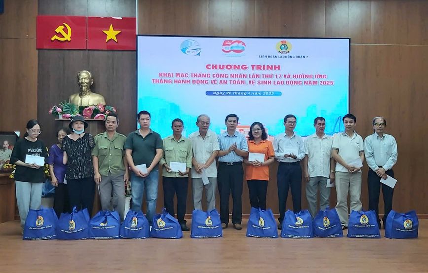 Trong “Tháng công nhân” lần 17 năm 2025, LĐLĐ Quận 7 thực hiện các chương trình chăm lo, tri ân đoàn viên công đoàn, người lao động, nhất là đoàn viên công đoàn, người lao động khó khăn, bệnh năn y, bệnh nghề nghiệp, không may bị tai nạn lao động, trọng tâm là Chương trình “Triệu phần quà – cảm ơn người lao động” và trao 1.500 phần quà theo phân bổ thành phố; Chương trình “Phiên chợ nghĩa tình”, triển khai 3.500 phiếu quà mua hàng bình ổn giá; chăm lo 09 em mồ côi do Covid; 45 công nhân bị tai nạn lao động, công nhân có hoàn cảnh khó khăn; 15 đoàn viên bệnh hiểm nghèo và 01 trường hợp đoàn viên qua đời; trao tặng 04 mái ấm công đoàn…, tổng kinh phí thực hiện là 3 tỷ 685,880 triệu đồng.