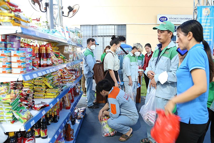 Sau chương trình khai mạc, các đồng chí lãnh đạo, chủ tịch các công đoàn cơ sở, đoàn viên, người lao động cùng tham quan mua sắm tại các gian hàng phúc lợi đoàn viên, gian hàng cắt tóc miễn phí, áo dài 0 đồng “trao gởi yêu thương”… tặng 3.500 đoàn viên khó khăn tham gia mua hàng với các gian hàng mua sắm hàng hóa, nhu yếu phẩm, thực phẩm, các gian hàng ẩm thực được ưu đãi về giá do các đơn vị ký kết phúc lợi đoàn viên. 7.000 phiếu mua hàng (100.000đ/phiếu) và tiền chuyển khoản 300.000đ/1 đoàn viên) với tổng số tiền 1 tỷ 750 triệu đồng.