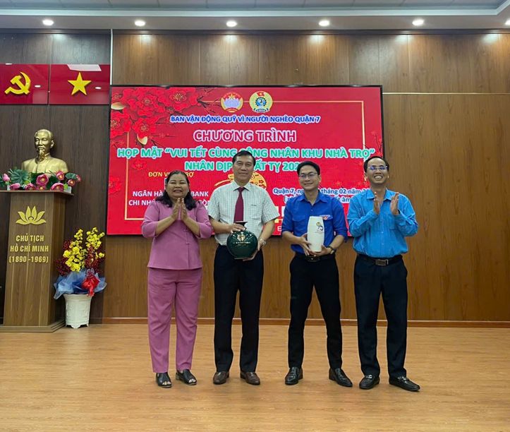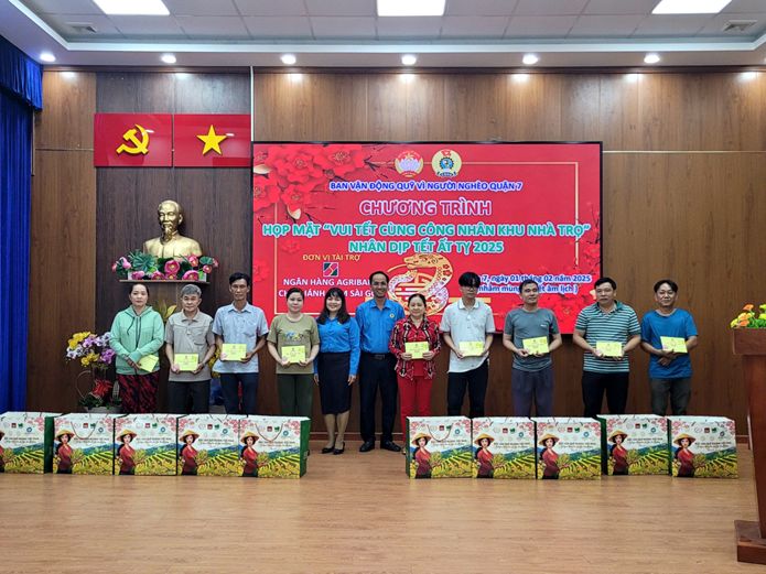 Tối Mùng 4 tết, ngày 01/02, Liên đoàn Lao động (LĐLĐ) quận 7 tổ chức chương trình Họp mặt “vui tết cùng công nhân nhà trọ” và trao tặng quà cho công nhân nhà trọ có hoàn cảnh khó khăn không về quê đón tết.