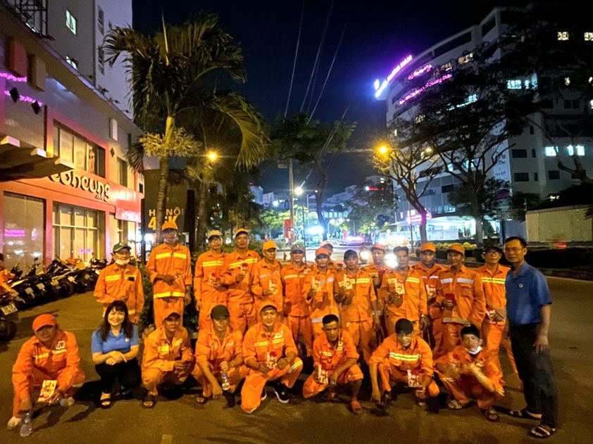 Phát biểu tại chương trình đồng chí Võ Khắc Bình Chủ tịch LĐLĐ quận cho biết trong dịp Tết Nguyên đán 2025, Quận 7 đã tổ chức nhiều hoạt động chăm lo cho đoàn viên, người lao động nghèo, công nhân, lao động xa quê, đang cư trú tại các nhà trọ trên địa bàn với mong muốn chia sẻ những khó khăn, vất vả trong những ngày Tết Nguyên đán với phương châm “Tết đến với mọi đoàn viên, người lao động, không để bất kỳ ai bị bỏ lại phía sau”. Và trong đêm giao thừa 29/12 (âm lịch), Thường trực LĐLĐ quận đi thăm và chúc tết (lì xì) công nhân vệ sinh môi trường đang làm việc quét rát trên các tuyến đường quận với 32 công nhân công ty TNHH MTV Dịch Vụ Công Ích quận. Tổng số tiền 16.000.000đ.