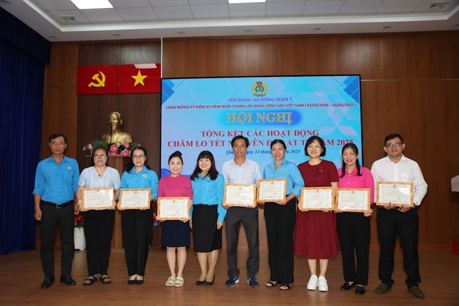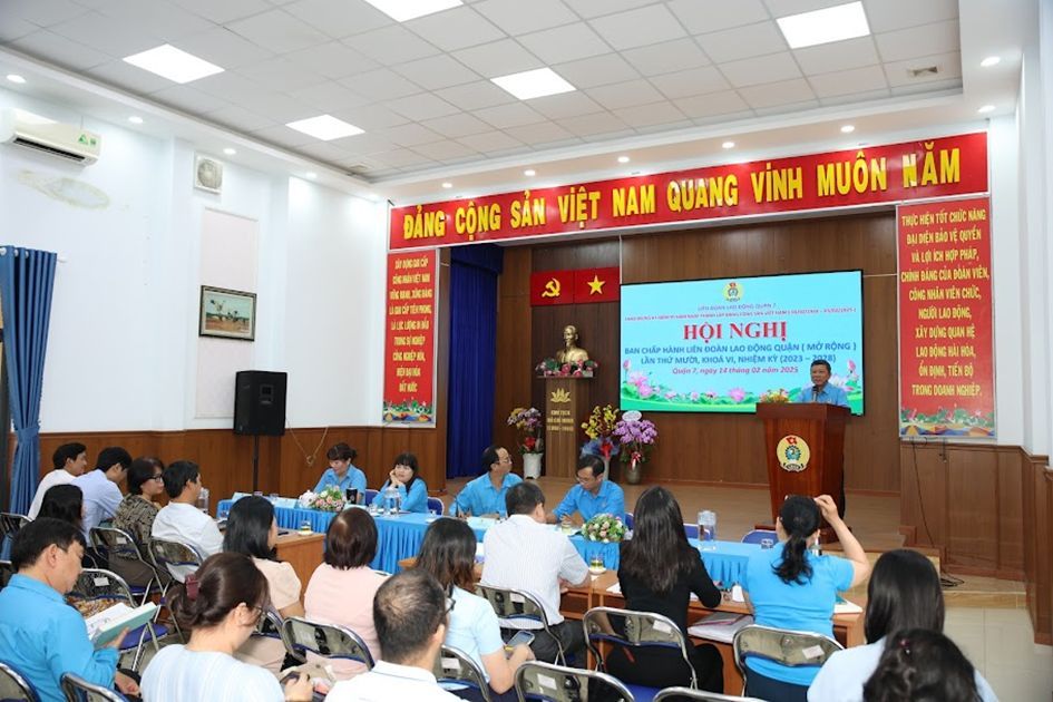 Ngày 14/02 Liên đoàn Lao động (LĐLĐ) quận 7 tổ chức Hội nghị Ban chấp hành LĐLĐ quận 7 mở rộng lần thứ mười, khoá VI, nhiệm kỳ 2023-2028 và tổng kết công tác chăm lo Tết Ất Tỵ 2025.
