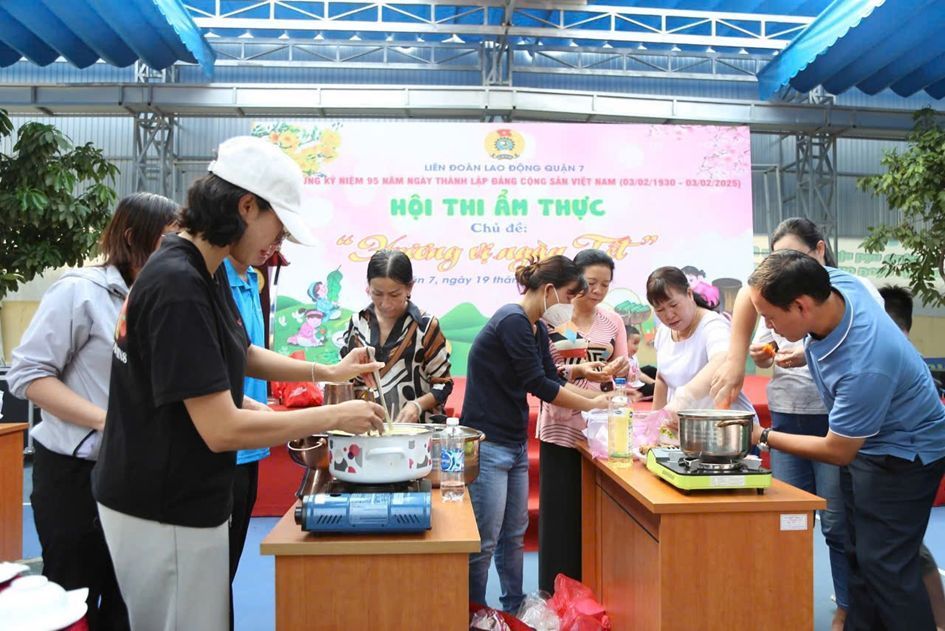 Nhằm thiết thực chào mừng kỷ niệm 95 năm Ngày thành lập Đảng Cộng sản Việt Nam (03/02/1930 – 03/02/2025) và Tết Nguyên đán Ất Tỵ năm 2025, Liên đoàn Lao động (LĐLĐ) quận 7 tổ chức Hội thi ẩm thực với chủ đề “Hương vị ngày tết” chào đón Tết Nguyên đán “Mừng xuân Ất Tỵ - Mừng Đảng quang vinh” tại sân sinh hoạt Nhà Văn hoá Lao động quận.