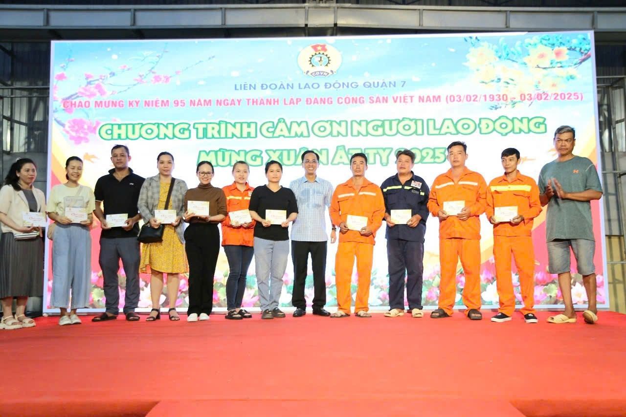 Tối 19/01/2025, Liên đoàn Lao động (LĐLĐ) Quận 7 tổ chức chương trình “Cảm ơn người lao động” thể hiện sự tri ân, cảm ơn người lao động đã nỗ lực, phấn đấu trong lao động sản xuất, góp phần cùng người sử dụng lao động vượt qua khó khăn, thách thức. Qua đó, động viên, khuyến khích công nhân lao động thi đua lao động sản xuất, không ngừng học tập, trau dồi kiến thức để nâng cao tay nghề, có thu nhập ổn định, vươn lên trong cuộc sống. Đây là hoạt động tôn vinh giá trị của người lao động có những đóng góp tích cực vào quá trình phát triển Thành phố và Quận nhà nhân dịp nhân dịp Tết Ất Tỵ 2025.