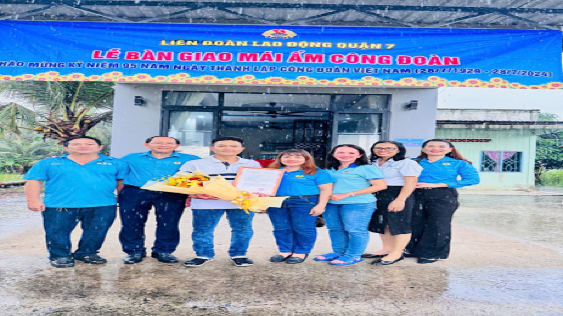 Ngày 09/10/2024, Liên đoàn Lao động (LĐLĐ) quận tổ chức lễ bàn giao “Mái ấm công đoàn” cho anh Nguyễn Thanh Pha đoàn viên Công đoàn cơ sở (CĐCS) Bệnh viện Quận 7 tại căn nhà Ấp Bình Trung, Xã Bình Khánh, Huyện Cần Giờ. Đây là “Mái ấm Công đoàn” thứ 3 LĐLĐ quận trao trong năm 2024, hoàn thành 100% chỉ tiêu