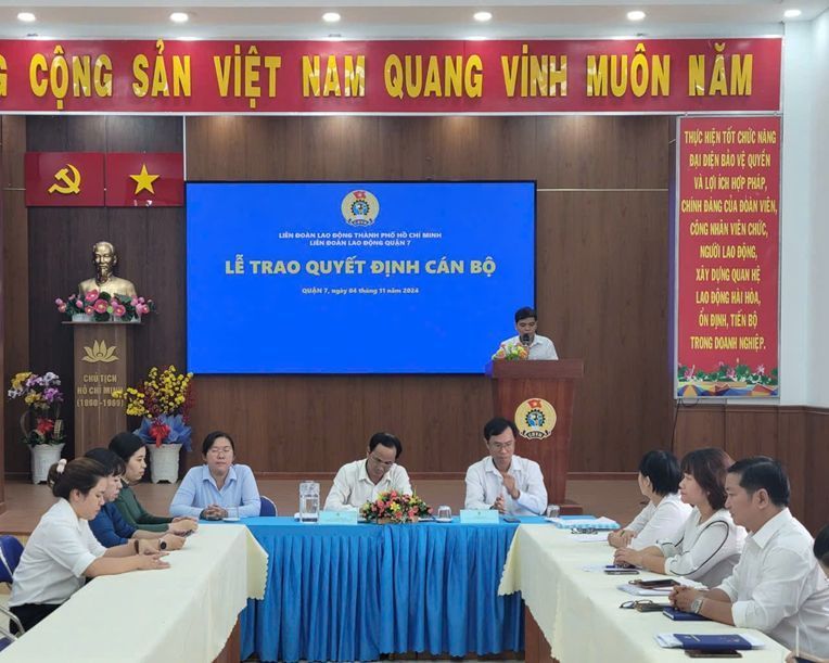 LIÊN ĐOÀN LAO ĐỘNG QUẬN 7 TRAO QUYẾT ĐỊNH TIẾP NHẬN CÁN BỘ