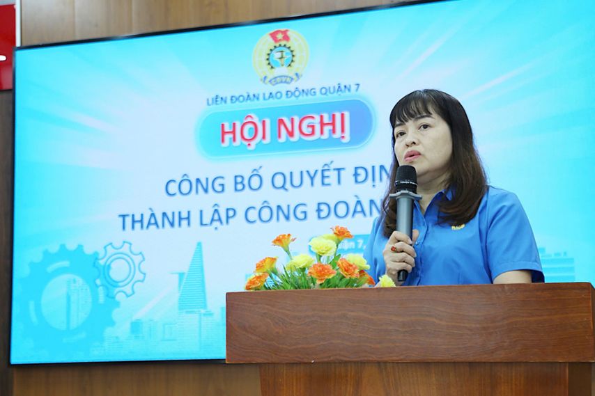 Phát biểu tại hội nghị, Phó Chủ tịch Thường trực Liên đoàn Lao động Quận 7 Nguyễn Thị Hồng Sen cho biết, công tác phát triển đoàn viên, thành lập CĐCS là một nhiệm vụ quan trọng nhằm tập hợp đông đảo người lao động vào tổ chức Công đoàn để chăm lo, bảo vệ quyền và lợi ích hợp pháp, chính đáng của người lao động, qua đó xây dựng tổ chức Công đoàn vững mạnh. Đề nghị Ban Chấp hành các CĐCS tiếp tục tuyên truyền vận động người lao động chưa tham gia công đoàn vào tổ chức công đoàn và đạt ít nhất 80% tổng số lao động của doanh nghiệp. Bên cạnh đó, tích cực vận động đoàn viên công đoàn tham gia các phong trào Công nhân, viên chức, người lao động và hoạt động Công đoàn Quận 7.
