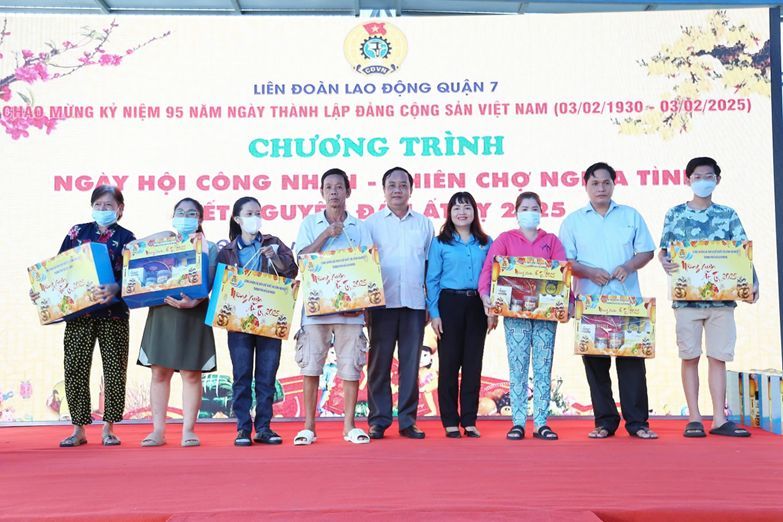 Chương trình “Ngày hội công nhân - Phiên chợ nghĩa tình” năm 2025 đã tổ chức 10 gian hàng “phúc lợi đoàn viên”, thu hút hơn 2.000 lượt công nhân, người lao động trên địa bàn tham quan và mua sắm. Trong đó, LĐLĐ Quận 7 cùng đơn vị phúc lợi phát hành 1.000 phiếu mua hàng (mỗi phiếu 500.000đ), tổng số tiền 500 triệu đồng phân bổ cho đoàn viên, người lao động có hoàn cảnh khó khăn được mua sắm các sản phẩm tiêu dùng thiết yếu như: nhu yếu phẩm, các loại kẹo mứt, lương thực thực phẩm dành cho những ngày tết; quần áo, hàng thời trang…, các mặt hàng này được giảm giá từ 30% đến 50% so với thị trường. Ngoài ra, công nhân lao động còn được thay nhớt và cắt tóc miễn phí từ chương trình. Thời gian phiên chợ được diễn ra từ 09h00 đến 22h00 ngày 18/01/2025 với sự tham gia hỗ trợ của các đơn vị ký kết phúc lợi đoàn viên.