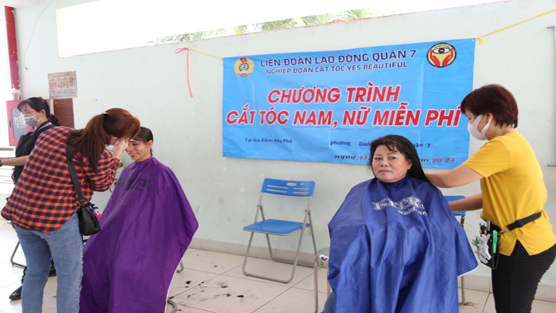Đoàn viên, người lao động tham gia cắt tóc miễn phí của Nghiệp đoàn