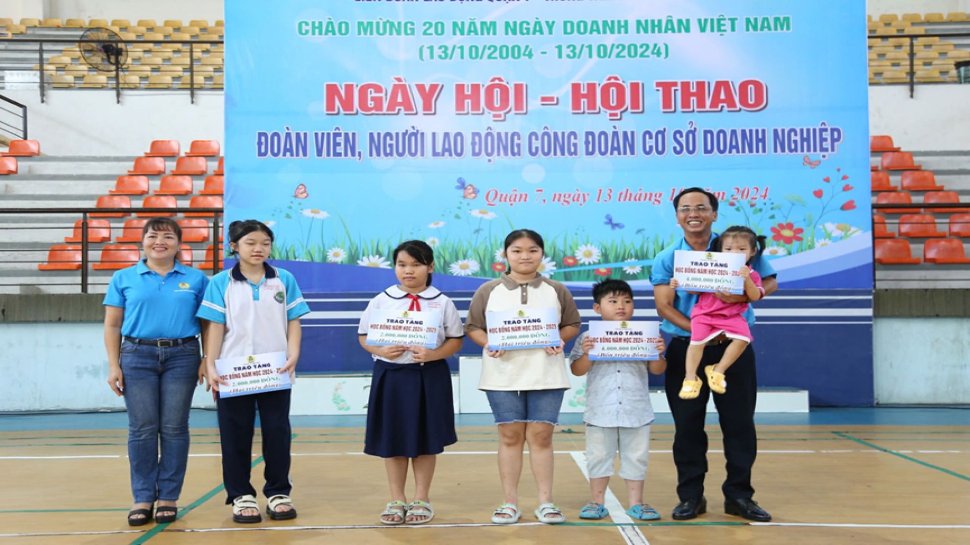 Tại ngày hội, Lãnh đạo Quận 7 đã trao tặng 08 suất học bổng của Hội bảo trợ người khuyết tật và trẻ em mồ côi Thành phố cho các em học sinh theo từng cấp học tổng số tiền là 22 triệu đồng; trao tặng 09 suất học bổng cho trẻ em mồ côi do Covid -19, số tiền 28 triệu đồng và trao quà hỗ trợ cho 08 đoàn viên bị bệnh hiểm nghèo, mỗi đoàn viên nhận hỗ trợ 2 triệu đồng, số tiền 16 triệu đồng. Tổng kinh phí quà tặng là 66 triệu đồng.