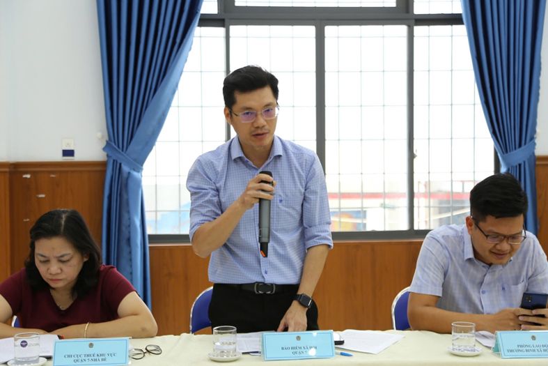 Để thực hiện tốt chương trình phối hợp giữa các bên trong thời gian tới, đồng chí Võ Khắc Bình mong muốn Phòng Lao động – Thương binh và Xã hội, Phòng Kinh tế, Bảo hiểm xã hội, Chi cục thuế Quận 7 – Nhà Bè thường xuyên trao đổi thông tin, phối hợp chặt chẽ, hiệu quả để quản lý tốt doanh nghiệp, thực hiện tốt chức năng đại diện, chăm lo, bảo vệ quyền và lợi ích hợp pháp, chính đáng cho đoàn viên, người lao động; cùng LĐLĐ quận tuyên truyền các quy định xử phạt vi phạm hành chính trong lĩnh vực lao động, Bảo hiểm xã hội…; đồng thời phối hợp trong công tác thu kinh phí công đoàn tại các doanh nghiệp nợ kinh phí công đoàn, tổ chức thực hiện thanh tra, kiểm tra và giám sát việc chấp hành pháp luật của doanh nghiệp. Bên cạnh đó, Chủ tịch LĐLĐ Quận 7 đề nghị Đảng ủy 10 phường quan tâm công tác đảm bảo an ninh trật tự, an ninh chính trị trên địa bàn; phối hợp thống kê, rà soát tình hình hoạt động của doanh nghiệp tại địa phương, từ đó vận động doanh nghiệp thực hiện nghĩa vụ đóng phí công đoàn đầy đủ; quan tâm giới thiệu đoàn viên ưu tú để xem xét kết nạp và phát triển đoàn viên, thành lập CĐCS trong các thành phần kinh tế.