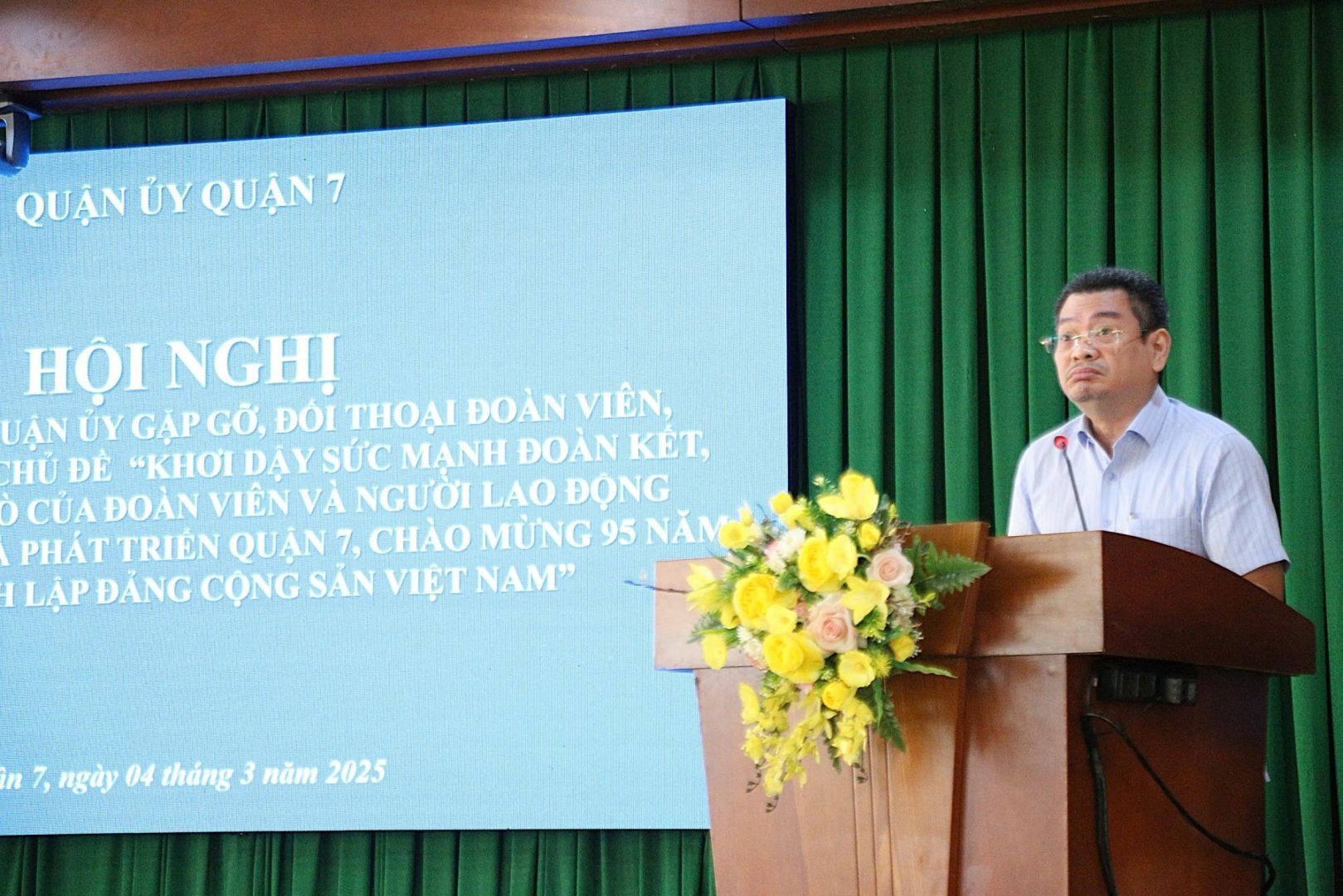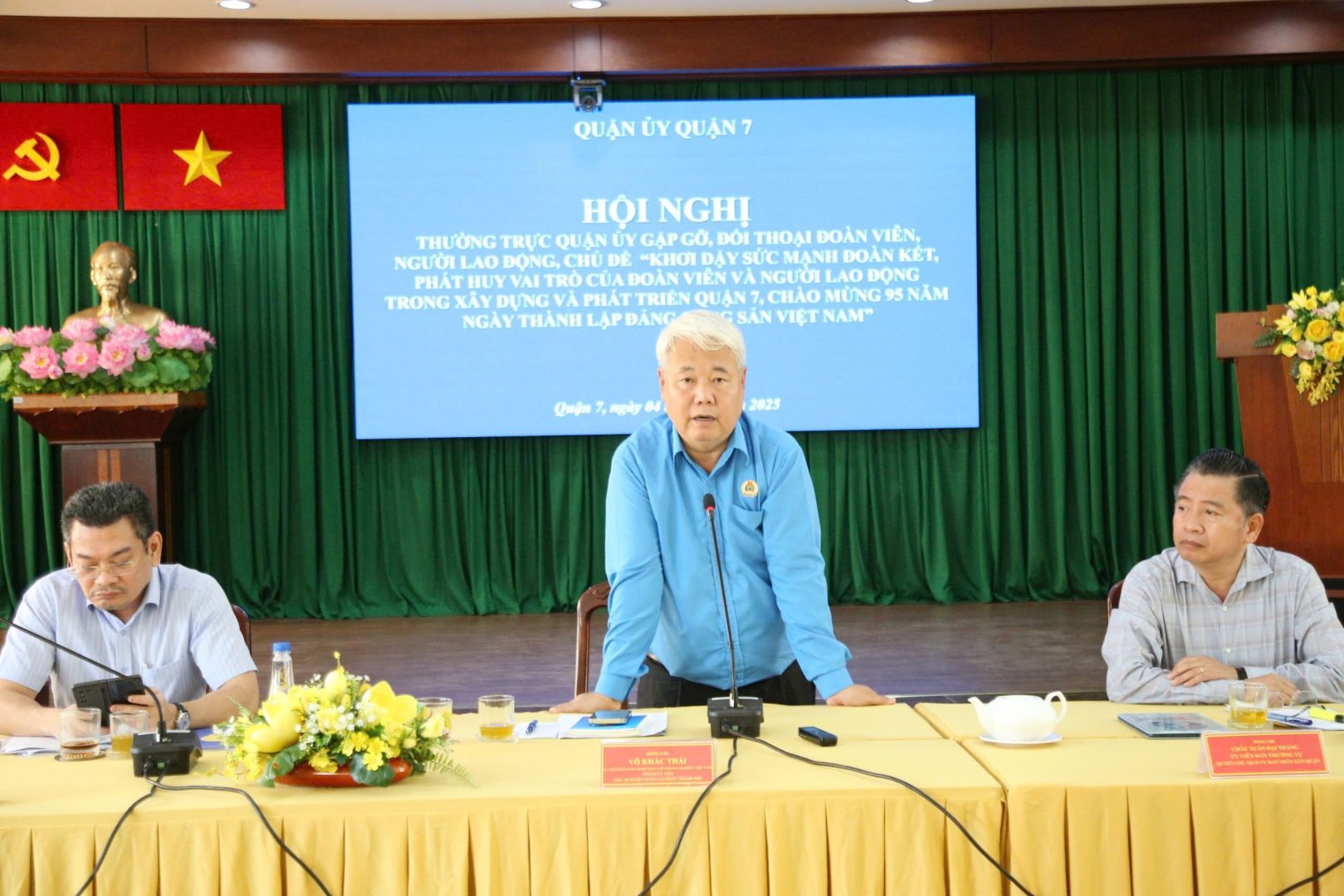Sáng 04/3, Quận ủy Quận 7 tổ chức hội nghị gặp gỡ, đối thoại đoàn viên, người lao động với chủ đề “Khơi dậy sức mạnh đoàn kết, phát huy vai trò của đoàn viên và người lao động trong xây dựng và phát triển Quận 7, chào mừng 95 năm Ngày thành lập Đảng Cộng sản Việt Nam”.