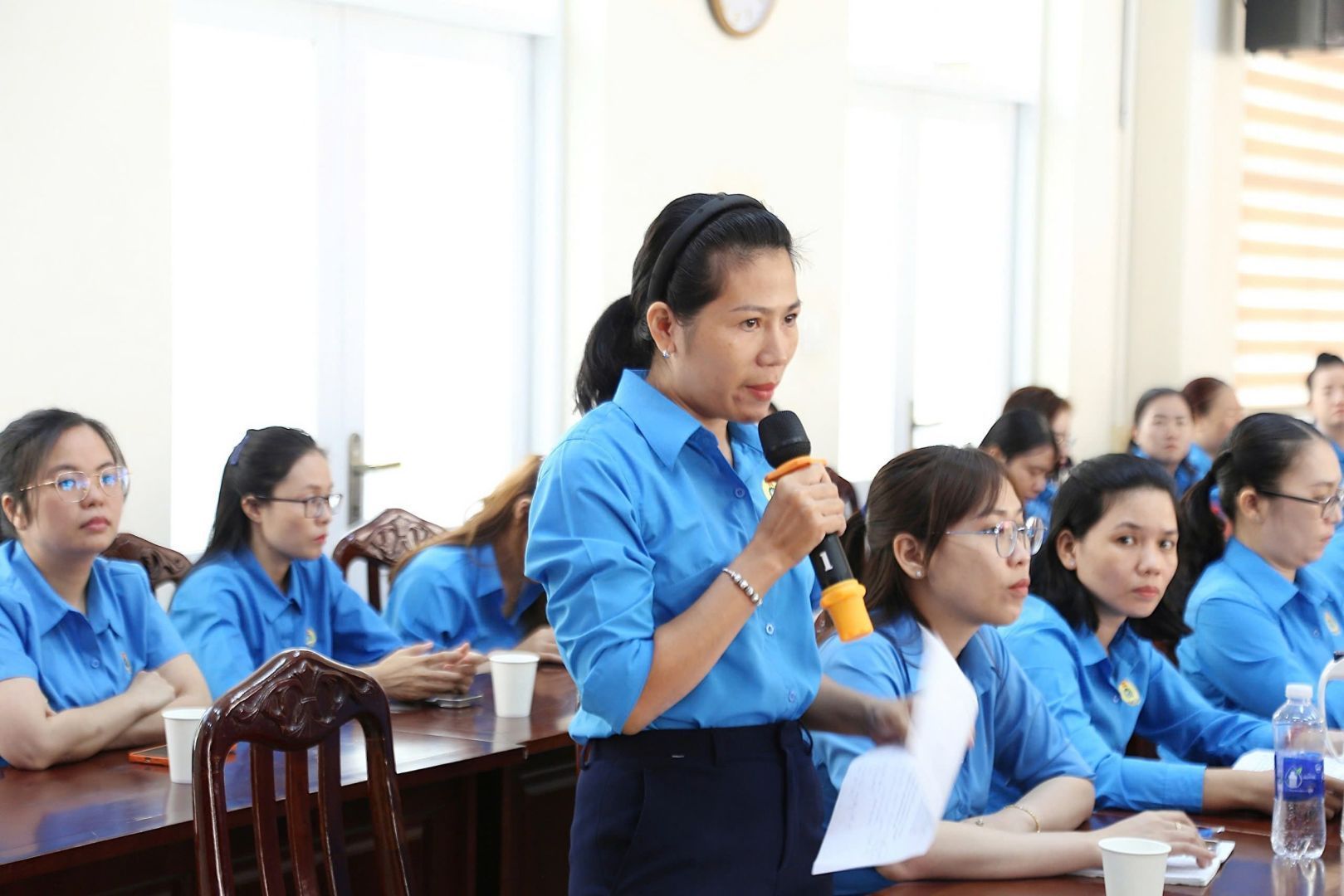 Tại chương trình, hội nghị đã được lắng nghe 12 ý kiến từ đoàn viên, người lao động quan tâm đến các vấn đề về an sinh xã hội; quản lý nhà nước về kinh tế, đô thị, môi trường; công tác xây dựng Đảng, chính quyền; công tác quản lý nhà nước về lao động và chuyển đổi số. Trong đó, bà Bùi Thị Thủy, CĐCS Trường mầm non Hoa Hồng đã đề xuất một số giải pháp trong đánh giá thực hiện Bộ tiêu chí Trường học hạnh phúc ở các cơ sở giáo dục trên địa bàn quận; nghiên cứu đầu tư xây dựng Thư viện thông minh chung của quận để tất các trường học trên địa bàn có thể kết nối, chia sẻ thông tin, dữ liệu, phục vụ công tác dạy và học của giáo viên và học sinh, có thể đề xuất kết nối với Thư viện thông minh chung của Thành phố; quan tâm, đầu tư xây dựng một số Trung tâm học tập cộng đồng thí điểm ứng dụng công nghệ thông tin trong cung cấp dịch vụ giáo dục, đào tạo từ xa cho người dân, sau thí điểm có đánh giá và tổ chức nhân rộng, góp phần nâng cao chất lượng giáo dục trên địa bàn quận.