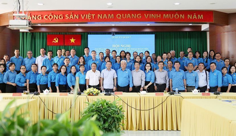 Tham dự hội nghị có các đồng chí: Võ Khắc Thái, Chủ tịch LĐLĐ TPHCM; Hoàng Minh Tuấn Anh, Bí thư Quận ủy Quận 7; Trần Chí Dũng, Phó Bí Thư Thường trực Quận ủy; Châu Xuân Đại Thắng, quyền Chủ tịch UBND quận; Nguyễn Văn Tuyền, Trưởng Ban Dân vận Quận ủy; Võ Khắc Bình, Chủ tịch LĐLĐ quận...